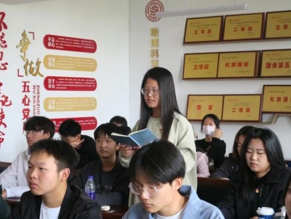 会上,团委工作人员申潞涛带领大家共同学习了习近平总书记同团中央新一届领导班子成员集体谈话时发表的重要讲话精神,并组织同学们围绕“四个意识”“四个自信”以及“两个确立”的决定性意义等内容进行了深入探讨。与会团员纷纷表示,要深刻领悟习近平新时代中国特色社会主义思想,将其内化于心、外化于行,融入日常的学习工作中。