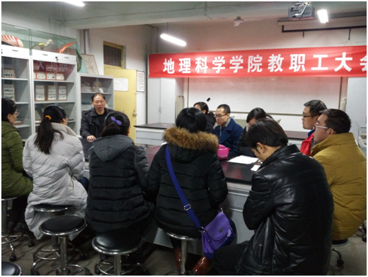 报告明确指出,2017年学院工作思路,加强政治理论学习,以“两学一做”学习教育的成效助推学院各项工作向前发展;围绕学校建设发展和办学定位,稳步实施“十三五” 发展规划;加强以课堂教学改革为中心的教学改革,扎实推进以高水平学科领军人才引进为突破口的重点学科建设,不断提高教师队伍科研水平;进一步加强硕士研究生的管理工作,力争获得地理学科一级硕士学位授予权;全面做好学生教育管理工作,继续加强学生课外科技创新能力培养,整体提升学生综合素质;扩大对外学术交流,发挥学科优势、服务地方经济发展,实现校地合作双赢,不断提升学院的办学水平和影响力。