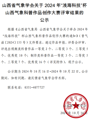 浅海科技杯由山西省气象局与山西省气象学会共同主办,是为了加强气象科学知识的普及力度,开展科普视频创作,面向全省气象部门、有关气象类院校和气象科普爱好者而举办的科普作品创作大赛。