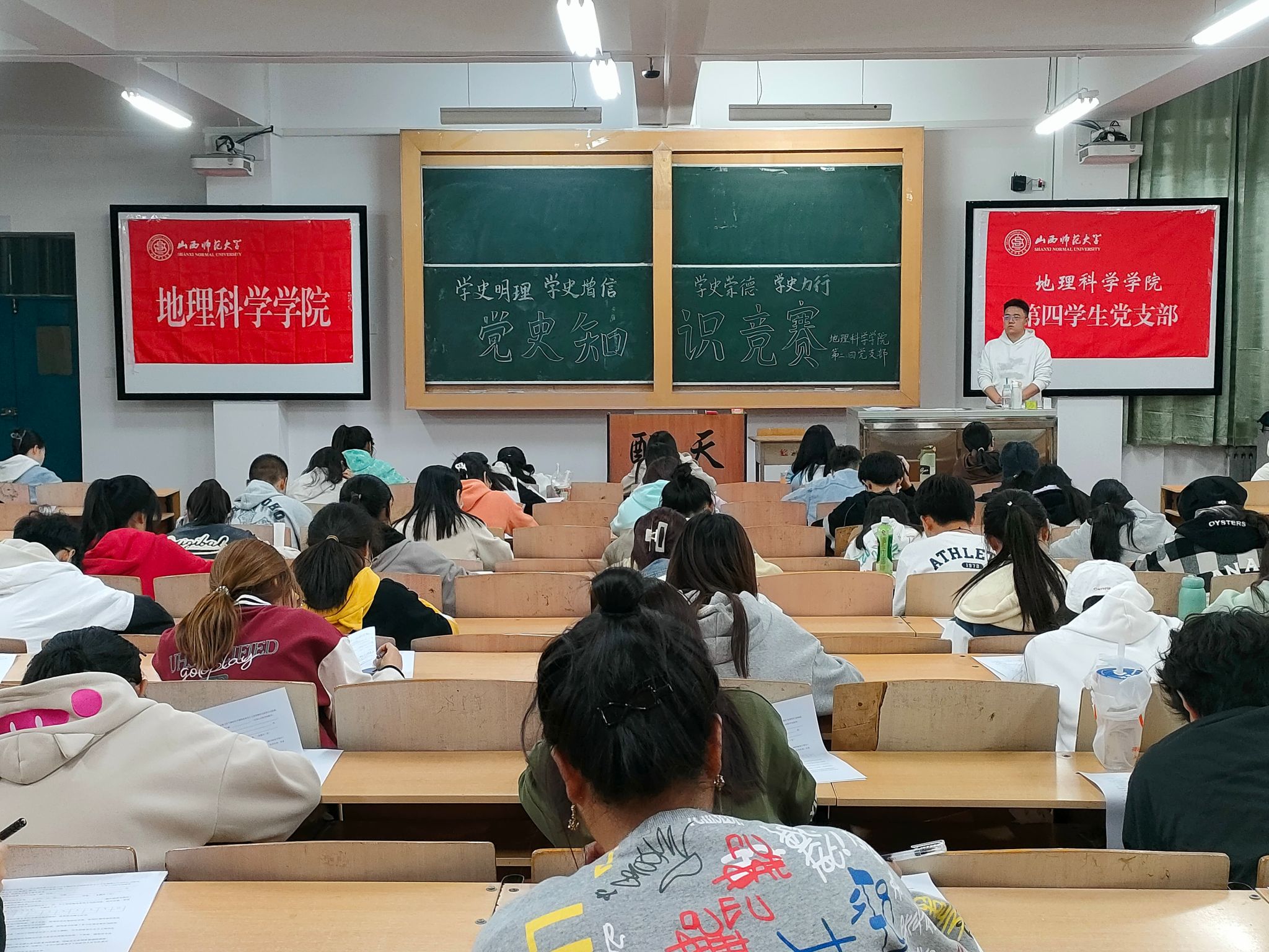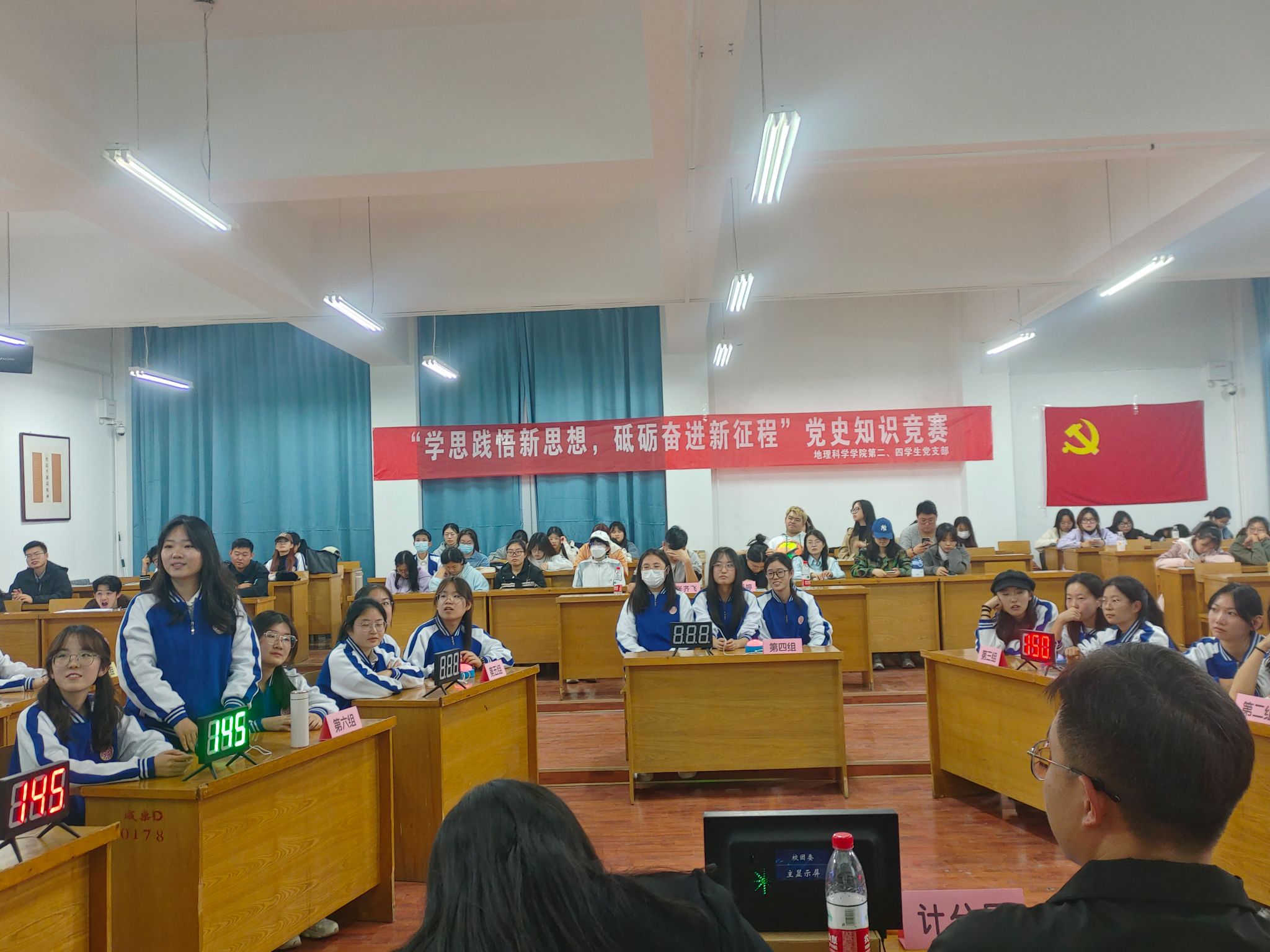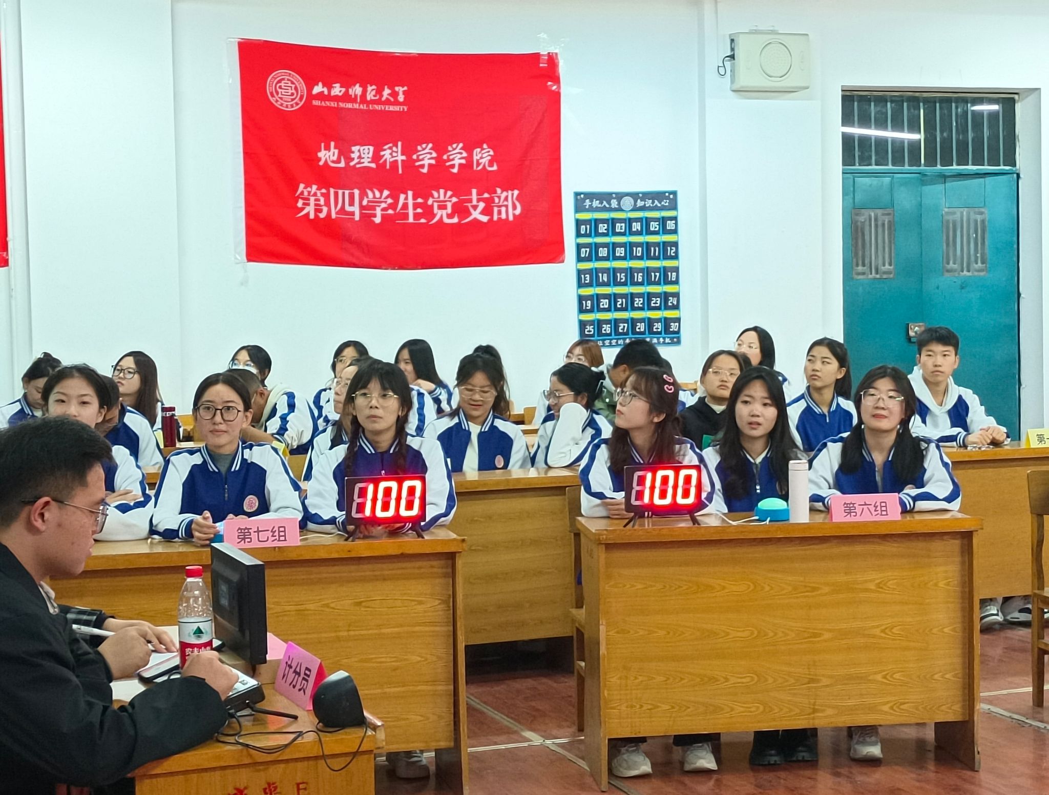 10月29日下午,党史知识竞赛决赛在南区3210教室举行。决赛分为必答题和抢答题,涵盖党史党章、习近平总书记视察山西重要讲话、党的二十大报告以及地理相关知识、红歌等多方面内容。通过现场作答形式累计小组积分,综合考验参赛选手理论知识储备、心理抗压能力和团队协作能力。在必答题环节,参赛选手们团结协作、沉着应答,充分展现了丰富的知识储备;在抢答题环节,大家抢得快、答得准,比分你追我赶,赛况紧张又激烈。活动现场气氛热烈,选手们表现优异,赢来现场观众的阵阵掌声。